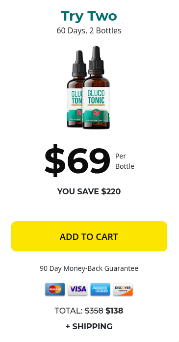 GlucoTonic 1 Bottle – $69 per bottle (YOU SAVE $220)