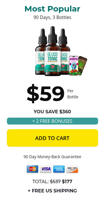 GlucoTonic 1 Bottle – $59 per bottle (YOU SAVE $360)
